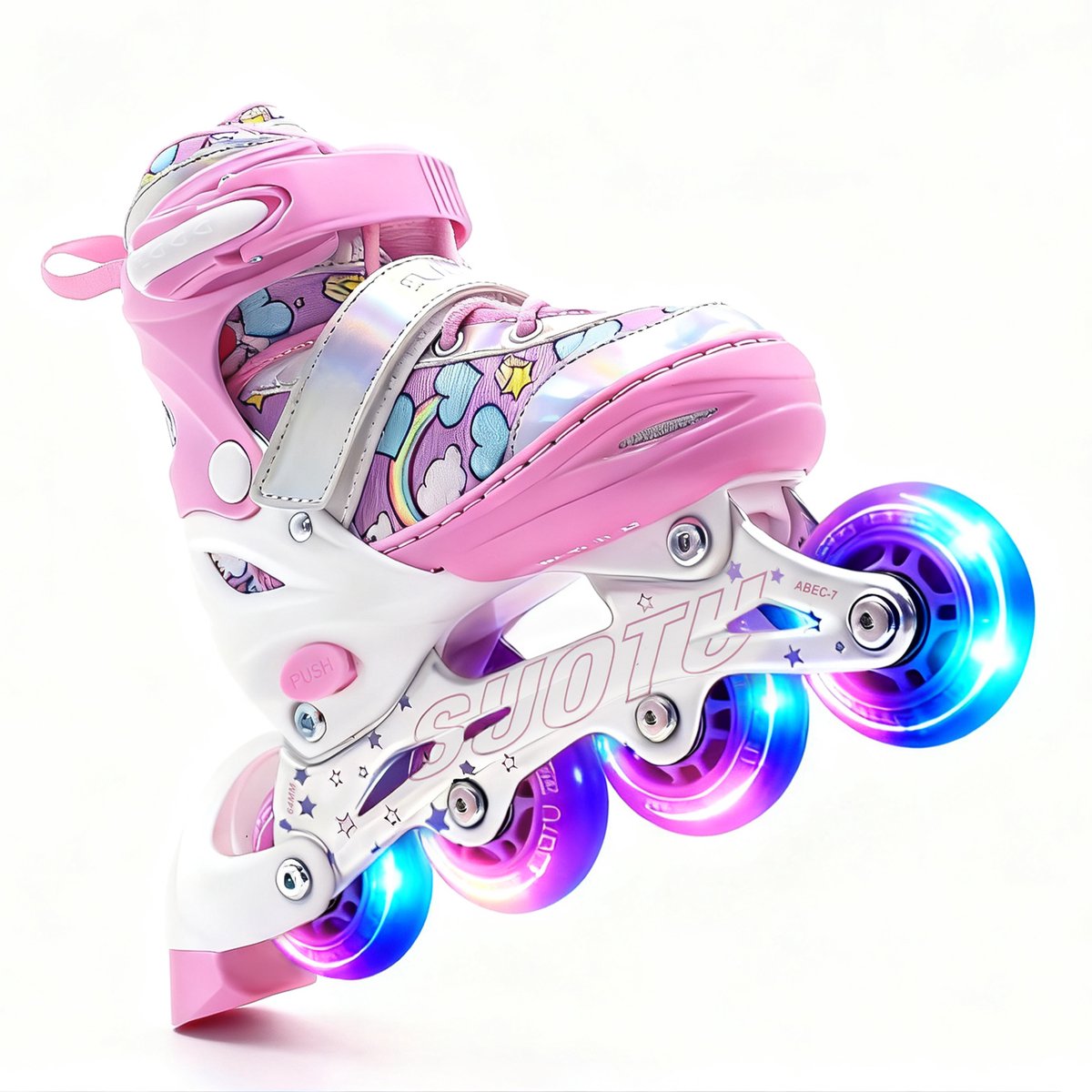De Suotu verstelbare skeelers zijn de perfecte keuze voor opgroeiende kinderen die willen leren skeeleren met stijl, comfort en veiligheid. Deze inline skates zijn ontworpen om met je kind mee te groeien, bieden uitstekende stabiliteit en zijn uitgerust met lichtgevende wielen voor extra zichtbaarheid én plezier.