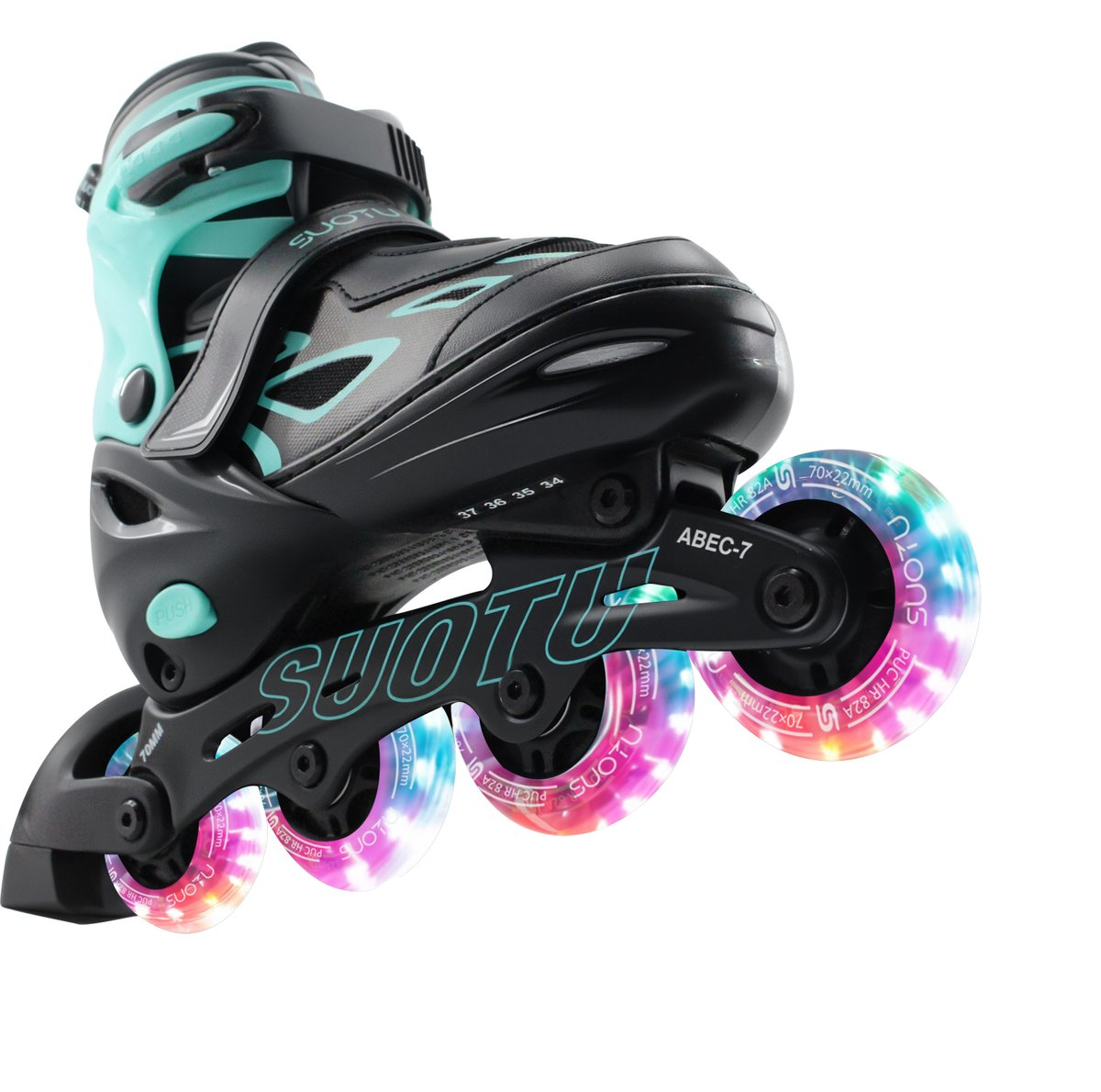 De Suotu verstelbare skeelers zijn de perfecte keuze voor opgroeiende kinderen die willen leren skeeleren met stijl, comfort en veiligheid. Deze inline skates zijn ontworpen om met je kind mee te groeien, bieden uitstekende stabiliteit en zijn uitgerust met lichtgevende wielen voor extra zichtbaarheid én plezier.