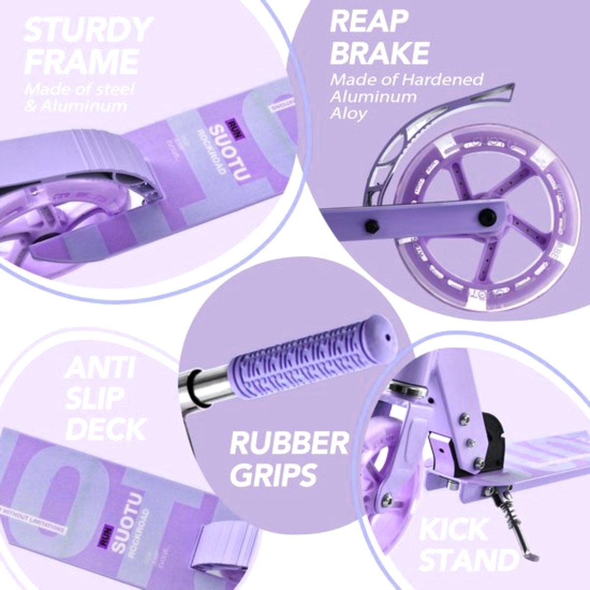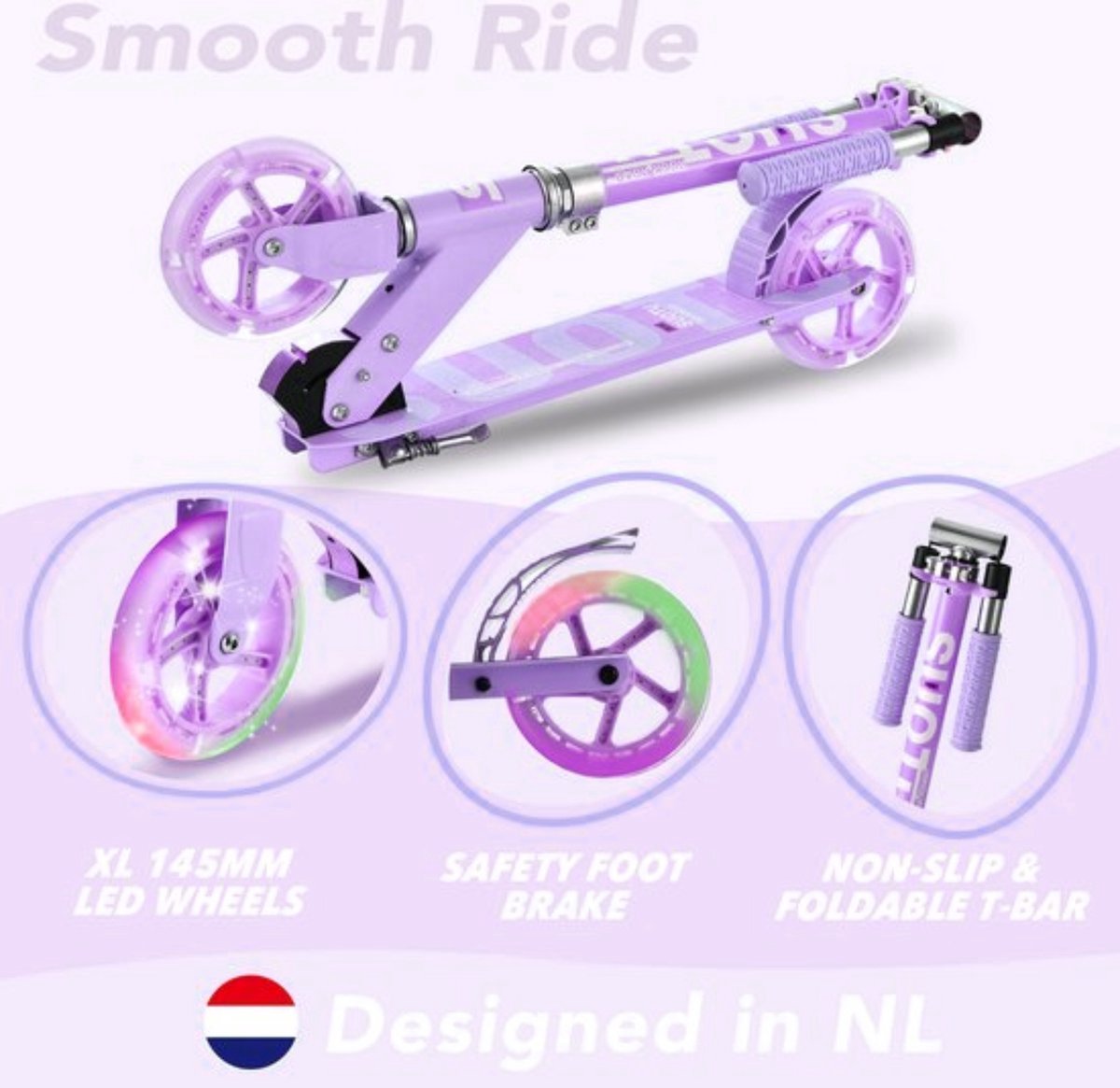 De Suotu step is uitgerust met ABEC-7 High Performance lagers, waardoor kinderen soepel kunnen rijden op verschillende ondergronden. Het brede antislip-dek zorgt voor extra stabiliteit en voorkomt uitglijden.