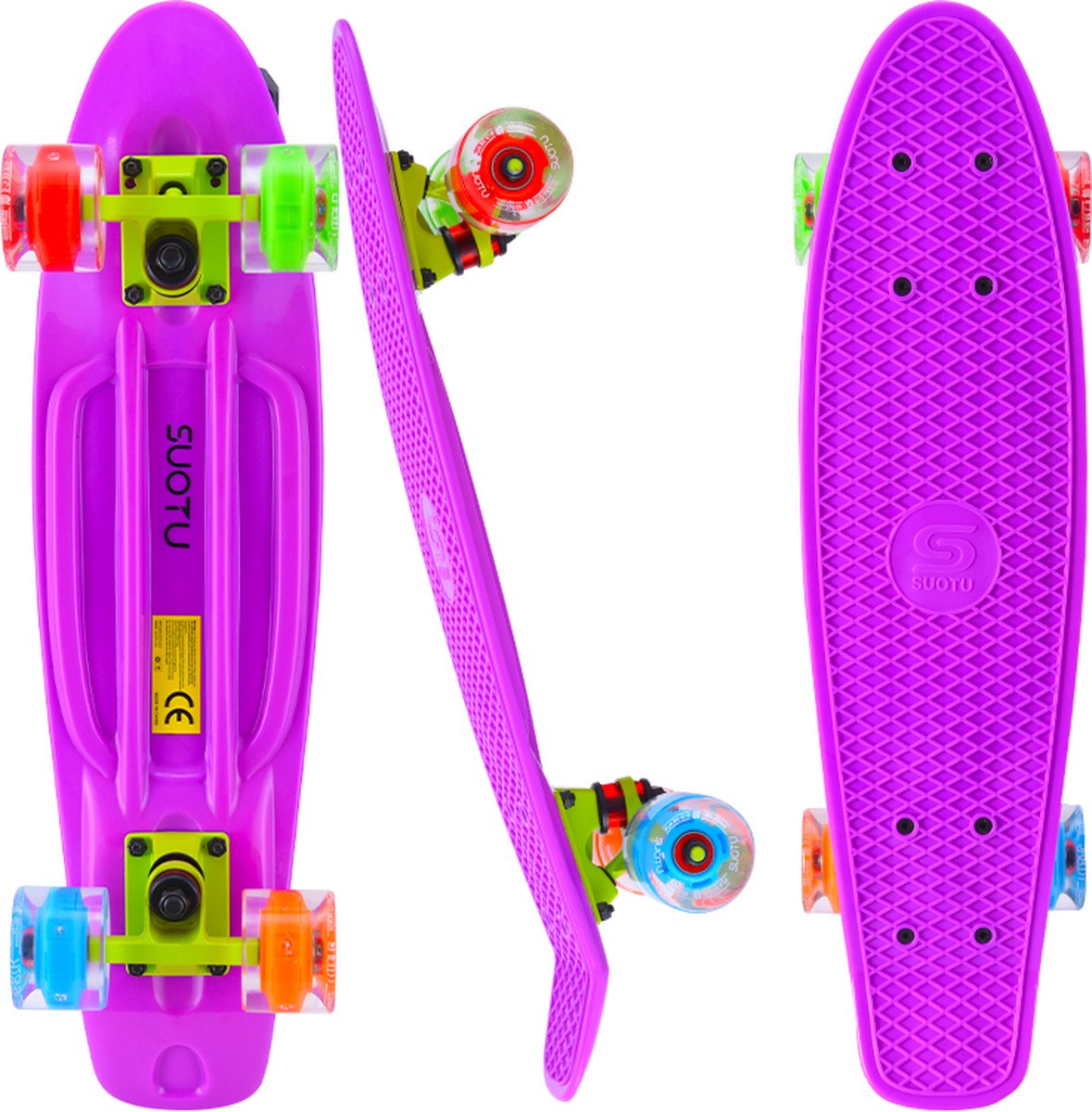 Klaar om op te vallen? Het Suotu LED-skateboard combineert opvallende verlichting met soepele prestaties – perfect voor kinderen en beginners die veilig willen leren rijden. De heldere LED-wielen lichten automatisch op tijdens het rijden, zonder batterijen. Of je nu overdag cruist of in de schemering rijdt, je bent altijd zichtbaar én stijlvol onderweg.